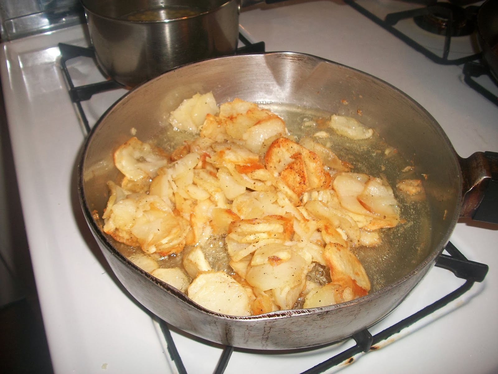 Marty had sliced/diced up the ham we bought earlier for .99/lb. I heated a few of the thick cut slices in a skillet while the potatoes were frying.